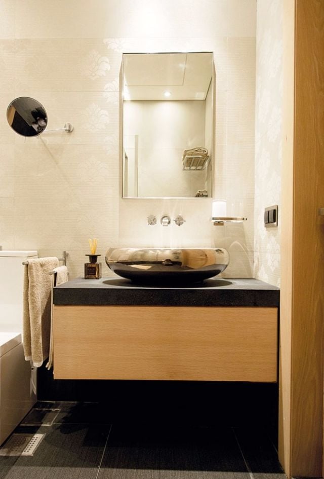 أما حمّامات الغرف فكلّها عصرية، وألوانها فرحة، لكن الخشب الجوزي والسنديان كما الكروم، من العناصر البارزة التي استخدمت في هندستها.