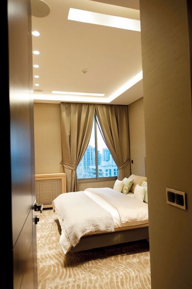 في هذه المساحة أيضاً، أراد المهندس بخعازي أن يكون الجوّ مفعماً بالراحة والدفء والاسترخاء، فصمّم الغرف كما لو كانت في فندق فاخر.
