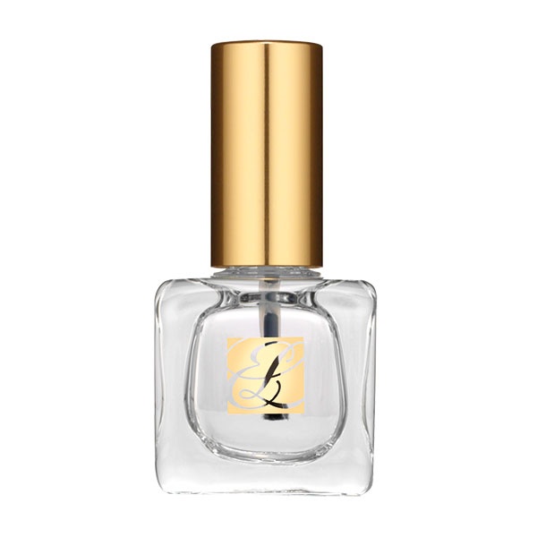 لوّني أظافرك بلون البيج-الرمادي الأنيق Lancôme Vernis in love Gris Rivoli no.559M، ثم غلفي اللون بطبقة من الطلاء الشفاف الواقي Estée Lauder Pure Color Nail Enamel Quick Dry Top Coat.