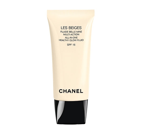 حضري بشرتك باستعمال المستحضر المقلص للمسامات Yves Saint Laurent Top Secrets Pore Refining Skincare Brush، ثم وحدي لونها وامنحيها إشراقة صحيّة بواسطة كريم الأساس الشفاف Chanel Les Beiges All-in-One Healthy Glow Fluid SPF 15، بعدها، ثبّتي الماكياج باستعمال البودرة الطلقة Givenchy Prisme Libre Loose Powder Quartet Air Sensation.