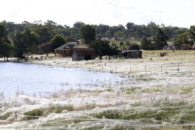 لم يتألف المطر الذي شهدته استراليا منذ ايام قليلة من المياه، بل من ملايين العناكب التي سقطت من السماء على منطقة "تابللاند".