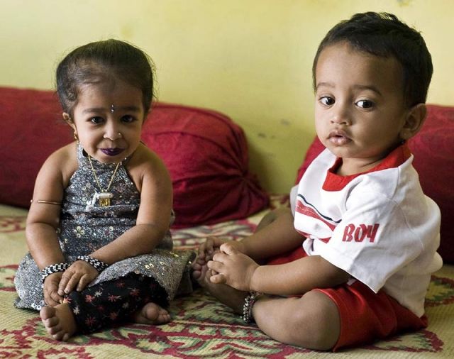 تعتبر الهندية جيوتي أمجي أقصر امرأة في العالم، إذ لا يزيد طولها على 62.8 سنتمترا. تعاني أميجي من نوع من التقزم الجسمي الحاد الذي لم يتوصل العلم إلى سببه أو طريقة علاجه.