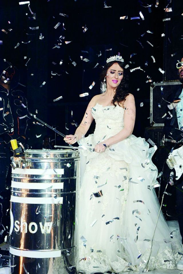سناء يوسف تغني لزوجها وترتدي فستانيْ زفاف