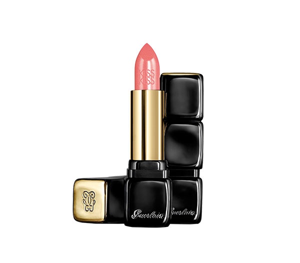 حدّدي شفتيك بقلم Dolce & Gabbana Precision Lipliner in Nude، ثم غلفيهما بأحمر الشفاه الوردي الساتيني Guerlain Rouge Kiss Kiss in Rosy Silk no.560