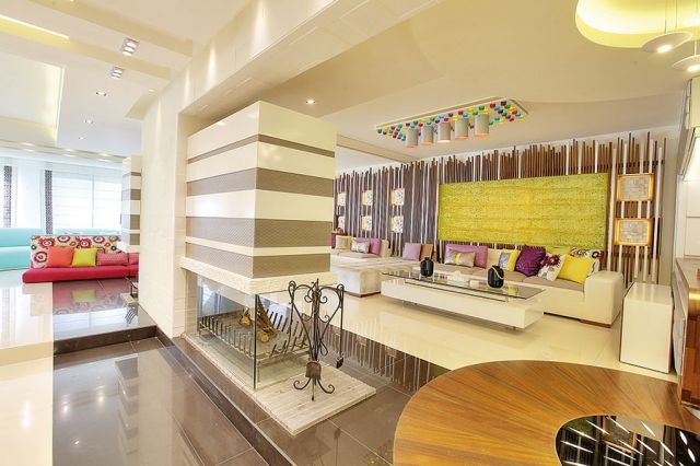 هنا يقيم الفرح وصخب الحياة، بين أربعة جدران. كلّ شيء في هذا المسكن خارج عن المألوف، ألوان صاخبة وأشكال هندسية لافتة وجريئة، امتازت بلمسة فنّية تحت سقف واحد، عندما تعاون المهندسان الثنائي ديانا وخالد حوحو وأطلقا العنان لأفكار هندسية جديدة اتبّعت آخر صيحات الموضة والتقنية العالية.