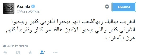 يبدو ان الفنانة أصالة نصري التي وصلت الى الرباط مساء الاربعاء الماضي مستغربة وحائرة إزاء الجمهور المغربي الذي تستهويه كل انواع الموسيقى، سواء كانت غربية او شرقية، من خلال تغريدة لها عبر حسابها الرسمي على "تويتر" جاء فيها: "الغريب بها لبلد وبها لشعب إنهم بيحبوا الغربي كتير وبيحبوا الشرقي كتير واللي بيحبوا الاتنين هالقد مو كتار وتقريباً كلهم هون بالمغرب".