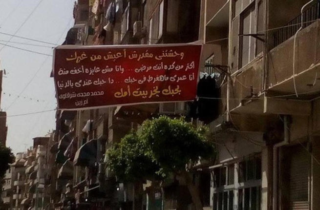 مصرية تعبر عن حبها لزوجها بلافتة: "يخرب بيت أمك"