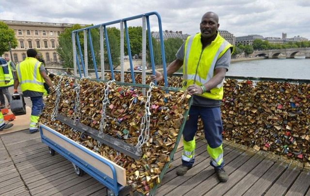 وأمس بدأت بلدية باريس تنفيذ قرارها بإزالة الأقفال التي ناهز عددها مليون قفل وبلغ وزنها 45 طناً، حيث شوهد العمال يرفعون الشباك التي تعلّق عليها الأقفال.