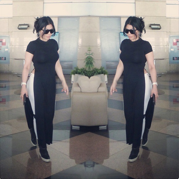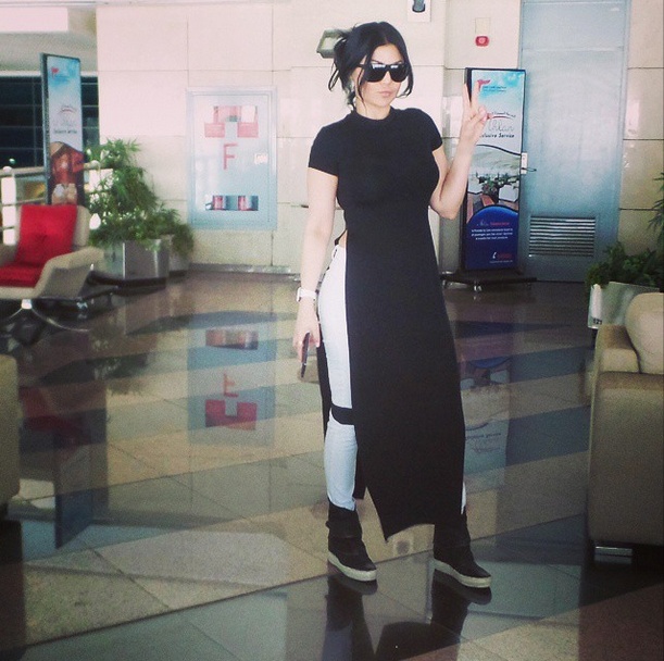 والفستان طويل إلاّ أنه مفتوح عن الجنبين من منطقة الخصر حتى القدمين، وارتدت تحته النجمة اللبنانية بنطالاً أبيض وأسود، وحذاء رياضياً، وبدت هيفا "كاجوال" بنظارات شمس ومن دون تسريحة شعر.
