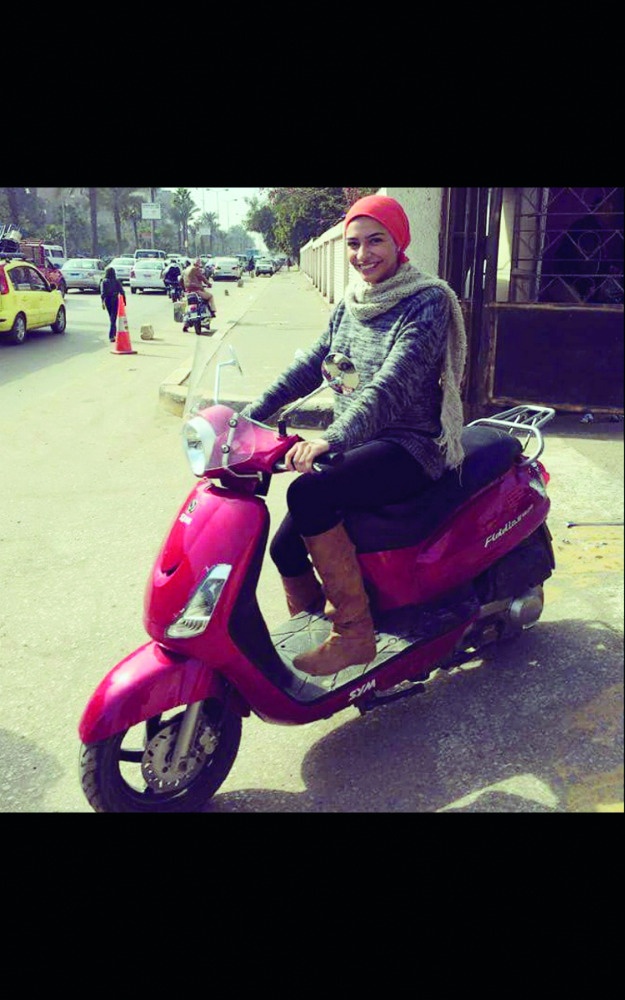 فتاة «السكوتر»، كما تشتهر في المجتمع المصري، تبلغ من العمر 25 عاماً، تخرجت في كلية الآداب قسم علم النفس، وتعمل في وزارة الداخلية المصرية كموظفة مدنية، ورغم أنها تنتمي الى أسرة ميسورة الحال وتمتلك سيارة خاصة، فقد وجدت راحتها في وسيلة نقل هي الأكثر انتشاراً بين الفئات الكادحة بسبب رخص ثمنها، الذي لا يتجاوز خمسة آلاف جنيه.