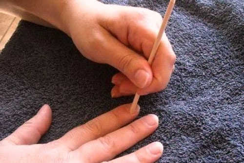 لا تنزعي الجلد المحيط بالأظافر بل ادفعيه يوميا إلى الخلف بواسطة العود الخشبي المعدّ لذلك بعد تليينه بالسائل المخصص له Remove Cuticle Lotion .