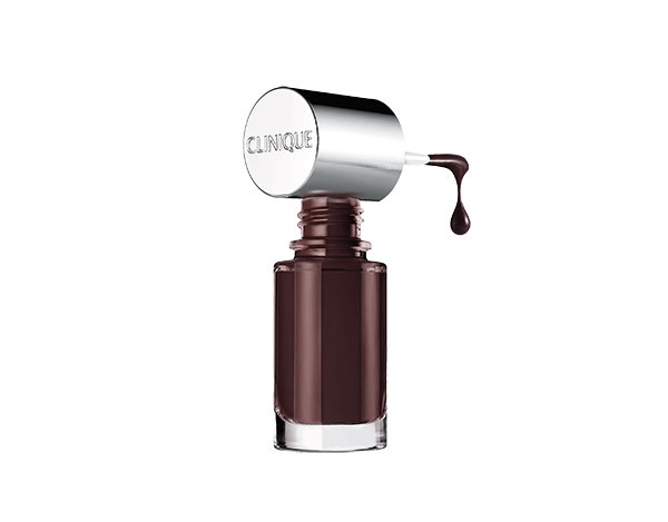 لوّني أظافرك باللون الخوخي الداكن Clinique a Different Nail Enamel in Black Honey، ثم غلفيه بالطلاء اللمّاع الواقيChanel Beaute des Ongles Extreme Shine Nail Lacquer.
