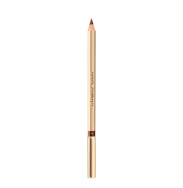 حدّدي شفتيك بقلم Dolce & Gabbana Precision Lipliner in Ultra no.07 وغلفيهما بأحمر الشفاه المخملي المطفأ الذي يدوم لساعات طويلة Dolce & Gabbana Matte Lipstick in Blood no.644.