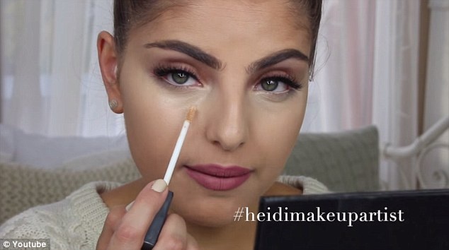 وبعد مرور 5 دقائق، وضعت هايدي على الفرشاة القليل من البودرة الخفيفة وبدأت بمسح البودرة الموجودة أصلاً تحت عينيها وخديها والمناطق الأخرى في وجهها.