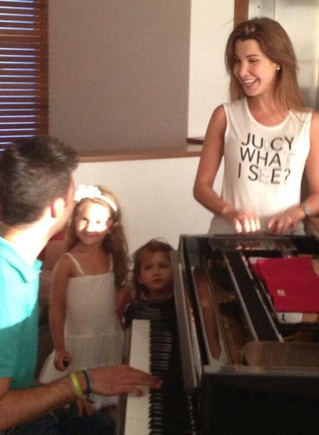 وحرص توما أن يغنّي لابنتي نانسي إيلا وميلا اللتين وقفتا إلى جانب البيانو تستمعان إليه بأذانٍ صاغية.