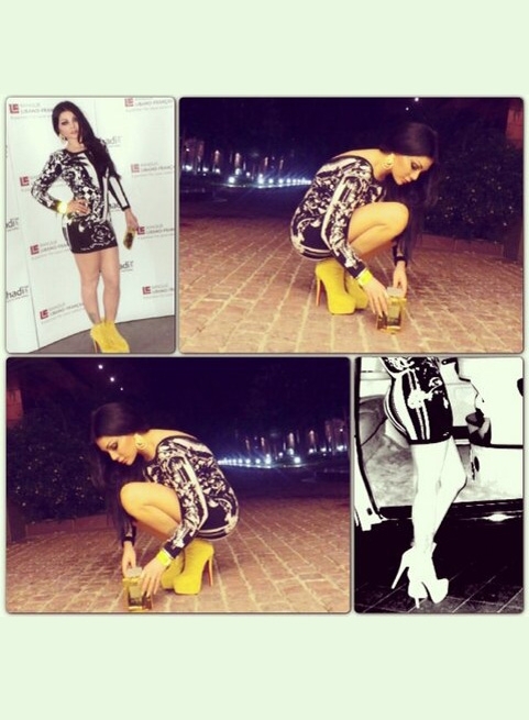 مع ثوبها الأسود المزخرف بورود ونقوش بيضاء اختارت النجمة هيفاء وهبي أن تنتعل حذاءً أصفر من مجموعة Louboutin! وشاركت هيفا كضيفة شرف في السهرة الخاصة التي أقامتها جمعية "كن هادي" تحت عنوان Taxi night 11، وحضرها شباب من مختلف الأعمار إضافة إلى شخصيات فنية وإعلامية وسياسية. وقد وصل الجميع إلى السهرة بالتاكسي كحلّ بديل، للحد من حصول حوادث السير.