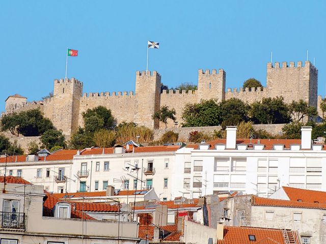 تشرف قلعة سان خورخيه على كل جهات لشبونة، فموقعها الجغرافي على هذه الهضبة استراتيجي، منذ أن شيّدت للمرة الأولى. يعود تاريخ هذه القلعة إلى القرن الثاني قبل الميلاد، وقد دُمرت مرّات عدة عبر التاريخ، وسكنتها شعوب عدة: الفينيقيون والقرطاجيون والرومان وقبائل جرمانية، ثم جاء المسلمون وتحديدًا بربر المغرب، وشيّدوا هذه القلعة، واتخذوها حصناً لهم.
