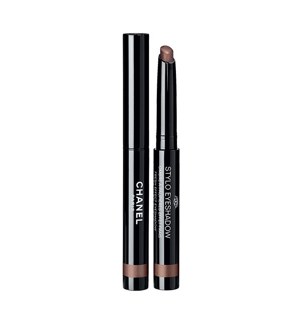 ● استعملي قلم الظلال البني الداكن Chanel Stylo Eyeshadow in Caroube no.147 فوق كامل الجفن المتحرك، ثم استعيني بعلبة الظلال الخماسية الألوان Yves Saint Laurent Couture Palette in Mauresques ووزّعي الظل البرونزي عند طيّة الجفن وخط الرموش السفلية. ثم وزّعي الظل الأبيض المضيء من العلبة تحت رسمة الحاجب وزاوية العين الداخلية.
