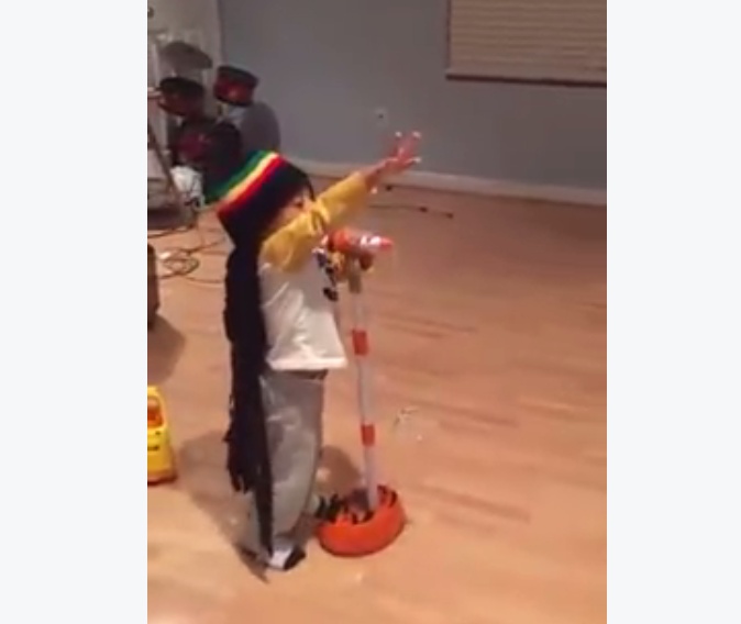 وارتدى الطفل في الفيديو القبعة الجاماكية موصولة بشعر طويل كشعر بوب مارلي، وراح يغني مستخدماً مايروفون لعبة ويرقص بطريقة مميزة، مقلداً النجم العالمي. وأثار الفيديو الكثير من التعليقات التي أثنت على هضامة هذا الطفل ونجاحه في التقليد.
