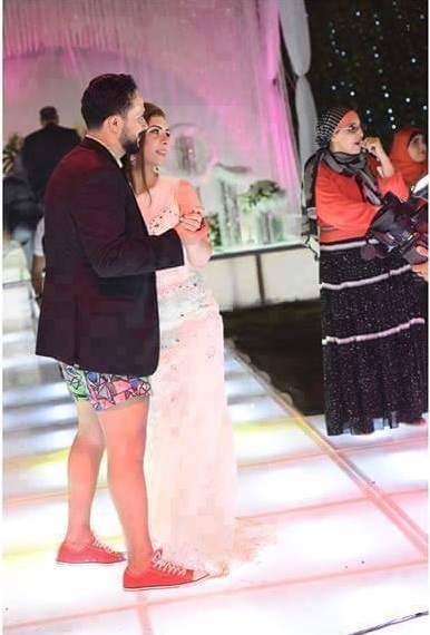 شتعل موقع فيس بوك بالتعليقات الساخرة؛ على صور حفلة زفاف حضر فيها العريس يرتدي بدلة بحر ملونة؛ عبارة عن شورت وقميص، ثم ارتدى فوقهما جاكيت بدلة بدون بنطلون، وهو الأمر الذي جعل رواد فيس بوك يعلقون على هذا الأمر بطرافة، حيث تعد هذه المرة الأولى التي يحضر فيها عريس حفلة زفافه بهذا الشكل.