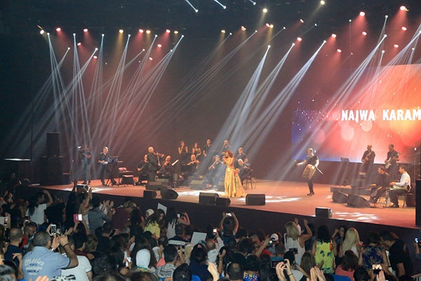 ليلة لبنانية برّاقة بألوان الفرح، الحب، الوطن والأمل أحيتها شمس الأغنية اللبنانية نجوى كرم ضمن سلسلة مهرجانات أعياد بيروت السنوية. اعتلت نجوى المسرح وبكلمات قليلة وجهت رسالة وطنية دعت فيها الشعب اللبناني الى الحياة والفرح، وشكرت كل من حضر متمنية لهم أمسية سعيدة. الحفل الفني الضخم الذي حضره عدد من الوجوه الفنية، الاعلامية، الثقافية والاجتماعية افتتحته نجوى باغنيتها الشهيرة "شمس الغنية" لتقدّم من بعدها باقة كبيرة من أجمل أغنياتها الخاصة وسط تفاعل جماهيري كبير وتصفيق كثيف. نجوى التي تقدّر جدا أفراد فرقتها الموسيقية قدّمت مع المايسترو انطوان الشعك أغنية "عيني بعينك" على المسرح كما شاركها الملحن جورج مارديروسيان بغناء "عالصخرة" وكان قد قدمها بكلمة خاصة الاعلامي محمد قيس. خلال الحفل أدّت نجوى وللمرة الأولى، في لبنان، أغنيتها الجديدة "بوسة قبل النوم" التي كانت قد صورتها على طريقة الفيديو كليب مع المخرج فادي حداد، وكما كان متوقعا انسجم جمهور نجوى مع مولودتها الجديدة بطريقة عفوية ولافتة. العلاقة الخاصة التي تجمع نجوى مع جمهورها بدت واضحة خلال السهرة، إذ ارتجلت مجموعة من الأغنيات نزولا عند طلبهم، ووجهت اليهم كلمات مفعمة بالمحبة والامتنان، كما لوحظ محبتهم الكبيرة لنجمتهم المفضلة عبر الهتافات والشعارات التي أطلقوها خلال الحفل وعبر الملابس الخاصة التي ارتداها بعضهم وتزيّنها صور كرم. أمسية مكلّلة بالفرح تربّعت على عرشها نجوى كرم شمسا للأغنية اللبنانية ونجمة حقيقية بحضورها الأخّاذ وصوتها الصادح واطلالتها الانيقة. ليلة عامرة شهدتها بيروت مساء السبت 25 آب حققت فيها كرم انتصارا جديدا مع Beirut Holidays التي تستكمل مهرجانها السنوي مساء الاثنين 27 آب بأمسية فنية فريدة يحييها البوب أوبرا العالمي اليساندرو سافينا من انتاج Star System ، 2U2C ، Production Factory .