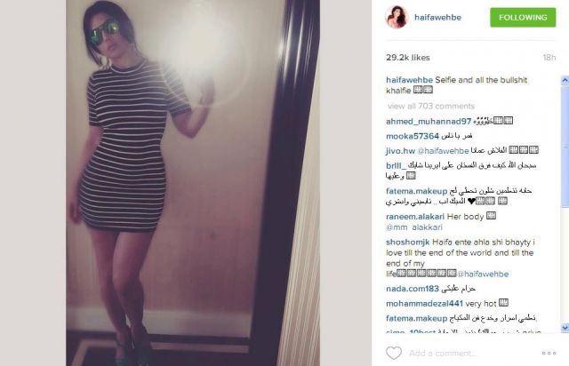 نشرت النجمة اللبنانيّة هيفاء وهبي على حسابها الخاص على تطبيق "انستغرام" صورة لها بفستان قصير مخطّط نالت استحسان الجمهور، ولكنّ اللافت كان تعليقها على الصورة الذي جاء صادماً وغير متوقّع.