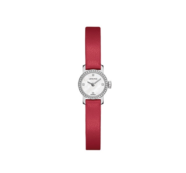 تقدم دار الساعات السويسرية Longines ساعة Longines Mini بتصميم كلاسيكي صغير مرصّع بالمجوهرات ودقيق الصنع. وقد عمدت Longines الى تزويد هذه الساعة بأشرطة لماعة وألوان جذابة لتختاري منها الساعة التي تناسب أزياءك في النهار أو الليل. أربعة مؤشرات ماسية وعقارب مطلية بالروديوم تعزز جمال الميناء المزخرف بعرق اللؤلؤ الأبيض، فيما يطوّق ميناء كلّ ساعة صفّ من حجارة الماس، ما يجعلها ساعة جوهرة بكل معنى الكلمة.