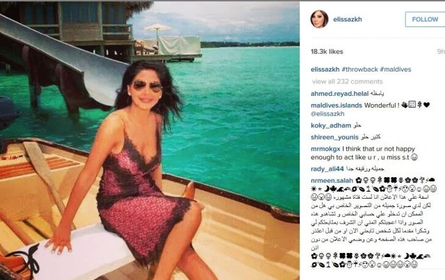 نشرت النجمة اللبنانية إليسا صورة جديدة لها على صفحتها الرسمية على موقع "انستغرام" أثناء عطلتها الصيفية في جزر المالديف.