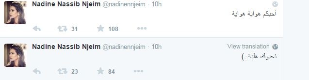 وعلى "تويتر" غرّد جمهور نجيم من بلاد عربية عدة، لا سيما من المغرب العربي، علماً أن وسم #نادين_نسيب_نجيم كان بين الأكثر انتشاراً في الجزائر على مدى الأيام القليلة الماضية.