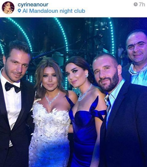 هكذا بدت سيرين عبدالنور برفقة زوجها في حفل زفاف أمل بوشوشة