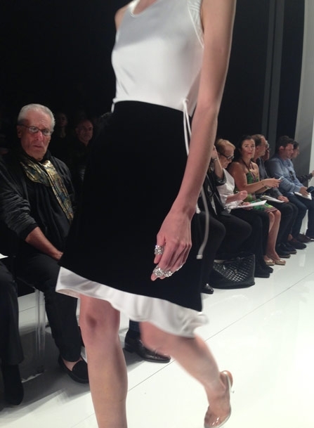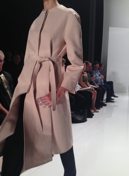 أتت مجموعة رالف روتشي لربيع وصيف 2014 راقية وأنيقة، فيها تفاصيل صغيرة كلها مشغولة على اليد في مشغل المصمم في نيويورك. هذه التصاميم تناسب المرأة العربية تماماً بألوانها الفاتحة وقصاتها المحتشمة. رالف روتشي يبحث دائماً على أن يكون مصدر إلهام للمرأة التي تبحث عن الجمال والهدوء في عالم الأزياء، وهو ينجح كلّ موسم بأن ينفرد ويقدّم ما هو مميّز، مثل الأكسسوارات البراقة اللاصقة على أصابع العارضات.