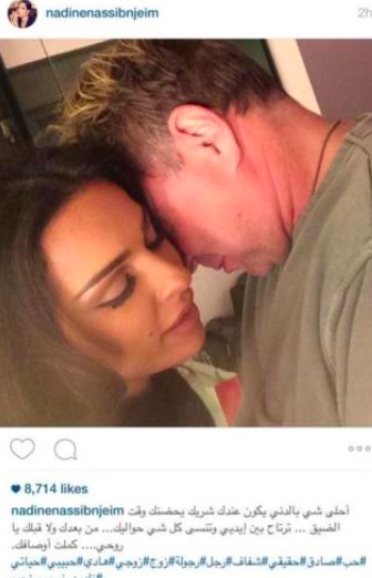 عبر حسابها على انستغرام، نشرت النجمة نادين نسيب نجيم صورة لها مع زوجها المهندس هادي الاسمر كتبت تعليقاً عليها: " أحلى شي بالدني يكون عندك شريك يحضنك وقت الضيق.. ترتاح بين ايدي وتنسى كل شي حواليك.. من بعدك ولا قبلك يا روحي.. كملت اوصافك.. حب صادق حقيقي شفاف رجل رجولة زوجي هادي حبيبي وحياتي".