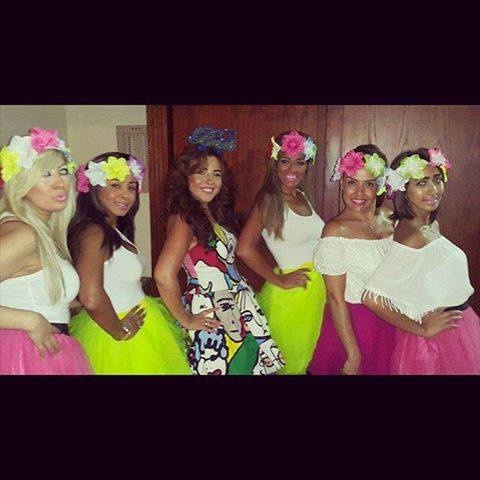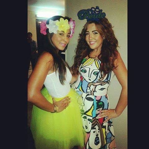 والملفت انها ارتدت فستاناً ملوناً عليه وجوه حزينة، وكان ماكياجها خفيف، وبدت مي سعيدة مع صديقاتها اللواتي ارتدين تنانير ملونة ووضعن الورود على شعرهن.