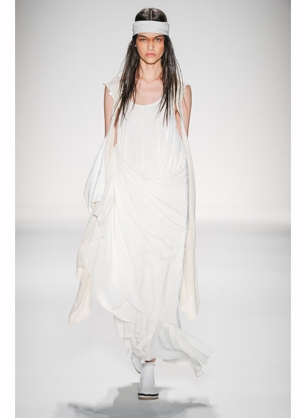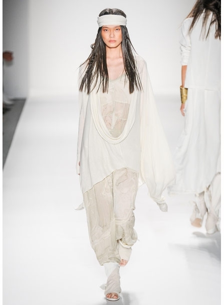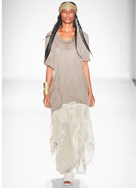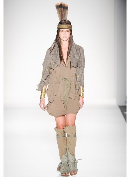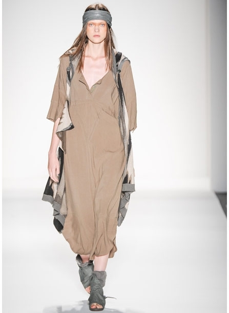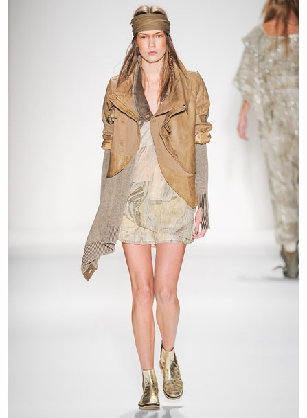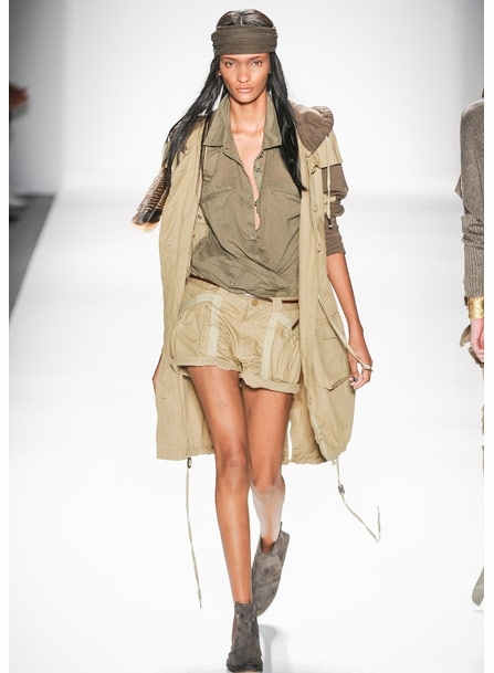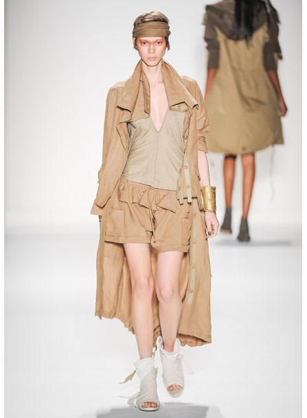 ضمّت المجموعة ثياباً عملية مريحة وفضفاضة بألوان طغا عليها الأبيض والأخضر العسكريّ. الأقمشة مطبوعة بنقوش لماعة، والسترات قصيرة أتت فوق الفساتين الواسعة، والجزمات عالية للصيف أو قصيرة تصل الى الكاحل.