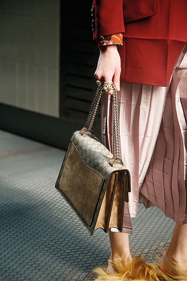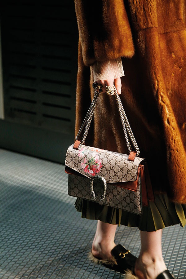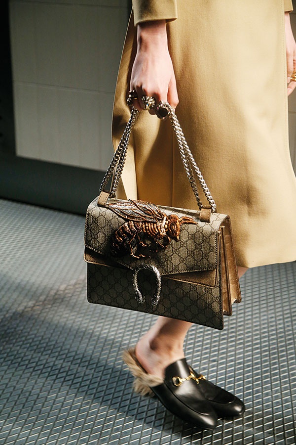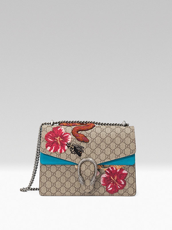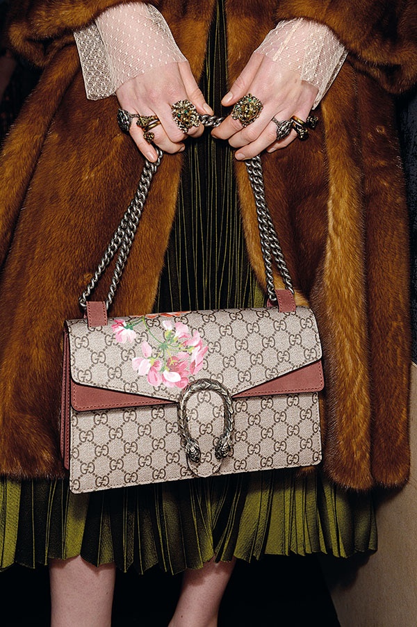 تقدّم «غوتشي» Gucci حقيبة Dionysus الجديدة، التي تتميّز بقفل إغلاق استثنائي بشكل رأسي نمر. هذا التفصيل الفريد يعيد إلى الأذهان البطل الإغريقي «ديونيسوس»، الذي تحوّل إلى نمر وفق الأسطورة ليحمل حورية عبر النهر الذي أصبح يعرف لاحقاً باسم «دجلة».