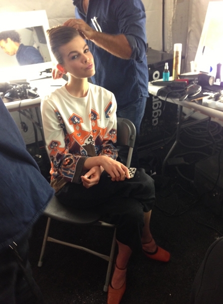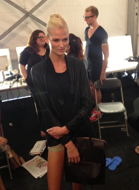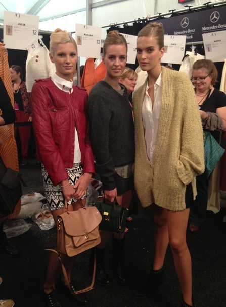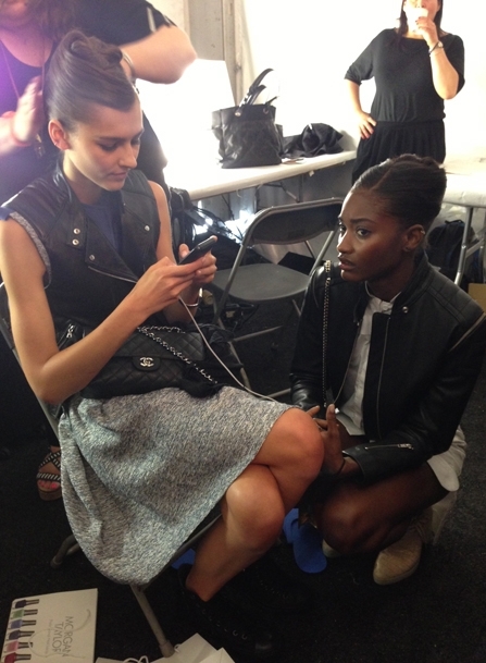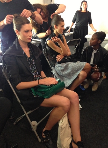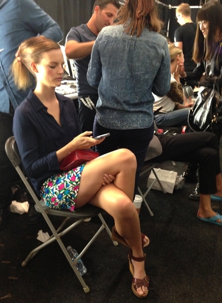 في الكواليس تصل العارضات بصورة، ثمّ يتحوّلن مثل سندريلا إلى شخصيّة أخرى يلعبن دورها لدقائق معدودة، بعد تصفيف الشعر والماكياج. ولكن ماذا ترتدي الفتيات لدى وصولهنّ إلى العروض في الحقيقة يعتمد على العرض... فإن كان العرض هامّاً، نراهنّ يأتين بكل أناقة حتّى ولو كانت الملابس عمليّة.
