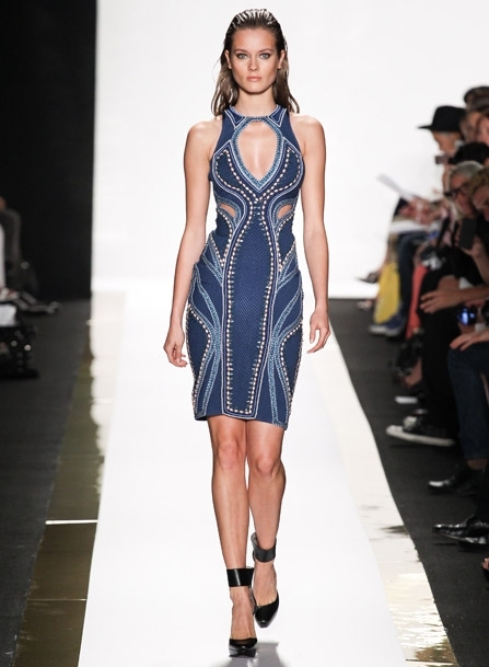 سحّابات ذهبيّة بارزة وحزام عريض بالكشاكش: في عرض Hervé Léger by Max Azria