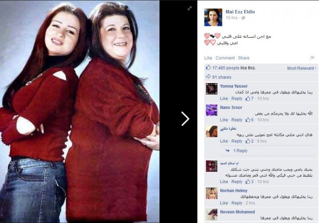 مي عز الدين ووالدتها تشعلان فايسبوك بالأحمر