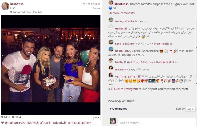 احتفلت الفنانة السورية ليليا الأطرش بعيد ميلادها للمرة الثالثة على التوالي في أحد المطاعم بحضور عدد من أصدقائها سواء من داخل أو خارج الوسط الفني، أبرزهم الفنان اللبناني سعد رمضان، لتكون بذلك أكثر فنانة احتفلت بعيد ميلادها.