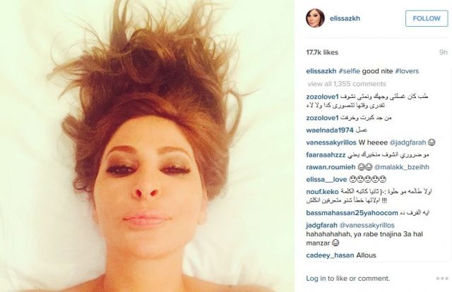 كذلك نشرت صورة ثانية قريبة "سيلفي" لوجهها وعلقت "تصبحون على خير أحبائي"، أثارت العديد من الانتقادات لاسيما وانها تنام بالماكياج.