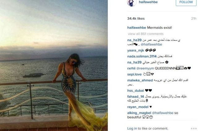 وبدت هيفاء بفستان صيفي ملوّن، طويل وظهرت كحورية بحر، ما أثار إعجاب وتعليق الالاف من متابعيها، وتم تبادل الصور بشكل كبير.