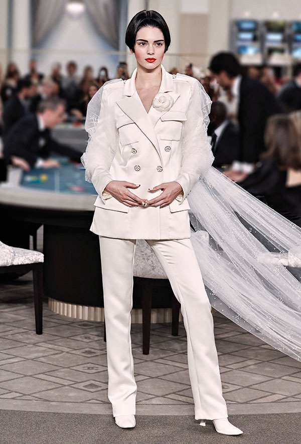 هكذا جمع كارل لاغيرفيلد الخبرة التقليدية في صناعة الأزياء الراقية مع أحدث التكنولوجيات، وابتكر مجموعة من البذلات الثلاثية الأبعاد استُخدمت لتنفيذها تقنية «الدمج الانتقائي باللايزر»، فجاءت مرسومة ومطرزة بالخرز ومبطنة بالساتين ومزينة بالتطريزات ومضفورة بالجلد. بدت الخطوط واضحة والألوان هادئة راقية: الأسود الذي أحبته كوكو شانيل، والكحلي والأبيض والأحمر والوردي والذهبي والبنفسجي والأخضر. وبرزت الأقمشة مطرّزة، ملوّنة، مخطّطة بالساتين أو مجدولة بالجلد. كما أُعيد ابتكار سترة شانيل الأيقونية، فقُدّمت في صورة مختلفة تماماً، عنها قال كارل لاغرفيلد: «تتمحور فكرتنا حول نقل السترة الأيقونية من القرن العشرين إلى القرن الواحد والعشرين في نسخة جديدة تستفيد من التقنيات المتاحة الآن». استباق المستقبل لم يفرض أسلوباً بعيداً عن أسلوب شانيل، عن أبرز ما يميّز ويطبع التصاميم الممهورة بتوقيع الاسم الشهير. ظهرت السترات التي تخطت شهرتها الحدود الجغرافية والزمنية، متلألئة بالبرق الفضي. ولم تفاجئ التنانير التي تصل حتى الركبة جمهور الدار الذي اعتاد الرقي «الشانيلي»، فظهرت بقصاتها الأنيقة الضيقة لكن من دون أن تقيّد حركة من ترتديها، وقد لاءمتها أيضاً المعاطف القصيرة الواسعة بأحجام منتفخة أحياناً تزينها جيوب عريضة. أما التويد الأيقوني الذي أعادت اكتشافه كوكو شانيل قماشاً يلائم أزياء المرأة، فظهر في العرض ليثري الفساتين والبذلات المميّزة بدرزات شانيل الجديدة. وأكملت مظهر التنورة المستقيمة التي تبرز أنوثة من ترتديها، تفاصيل مستوحاة من أزياء الرجال: الياقات المفتوحة وأزرار السترات والأكمام المطوية.