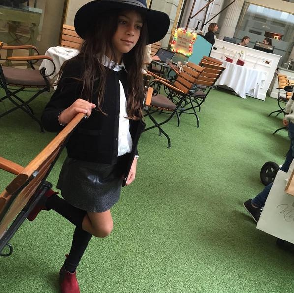 نشرت النجمة اللبنانية مايا دياب صورة لابنتها الوحيدة كاي وهي تبدو في غاية الأناقة والتألق. وظهرت كاي في الصورة وهي ترتدي تنورة قصيرة وسترة وقبعة أنيقة وجوارب طويلة.