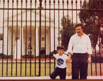 وفي التفاصيل، عندما سمع بابلو أن الولايات المتحدة الأميركية صنفته من أخطر المجرمين المطلوبين للعدالة، سافر إلى واشنطن عام 1980 والتقط هذه الصورة من أمام بيت الرئيس الأميركي ثم عاد بعدها لوطنه كولومبيا.
