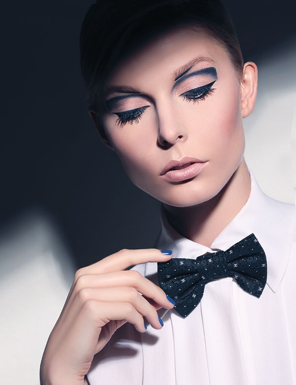 سيكون الخريف أزرق عند شانيل من العينين إلى الأظافر. الشفتان حياديتان ولا تطغيان على الظلال الزرقاء والآيلاينر الأسود...