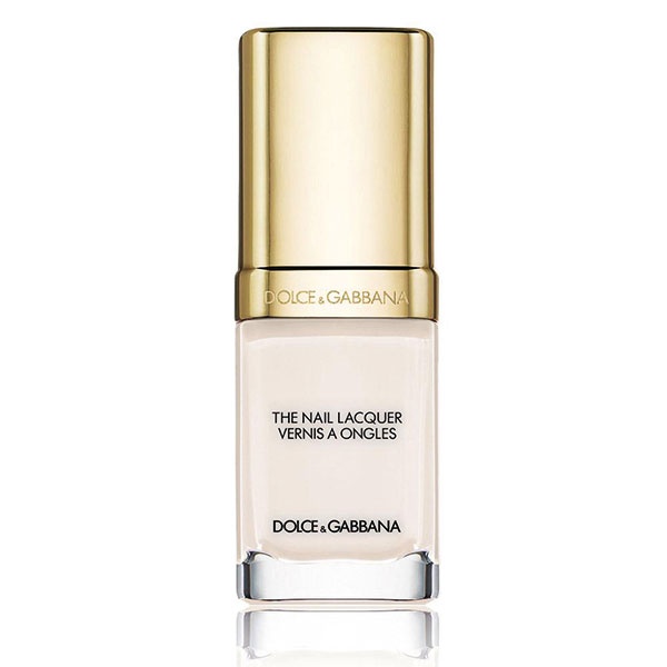 لوّني أظافرك باللون الصدفي الأنيق Dolce & Gabbana Intense Nail Lacquer in Innocence no.101 ، ثم غلّفي اللون بطبقة من الطلاء الواقي المعزز للمعان Estée Lauder Pure Color Nail Lacquer Enamel Quick Dry Top Coat.