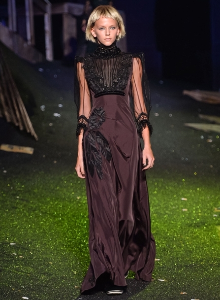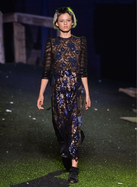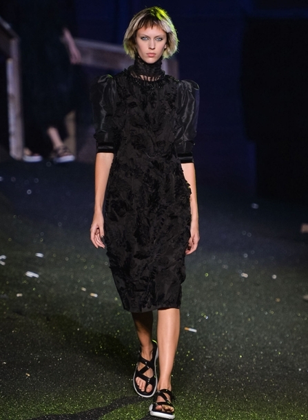 خطف المصمم مارك جايكوبز أنظار الحاضرين في مكانه المسرحي لتقديم عرضه، حيث نقلنا إلى شاطئ مهجور بعد العاصفة، على أنغام شبه مخيفة. طلة العارضات كانت دراماتيكيّة، بما فيها خطواتهن.