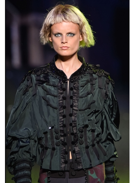 وقدّم مارك السراويل التي تصل إلى الركبة مزخرفة مع سترات أنيقة أضاف إليها الشراشيب باللون الأسود، بالإضافة إلى الفساتين الطويلة المطرزة بالباييت ومن الخلف مع ثنيات من قماش ناعم. كما قدّم القمصان من التقتا بأكمام عريضة. المجموعة عموماً كان فيها نكهة روسيّة.
