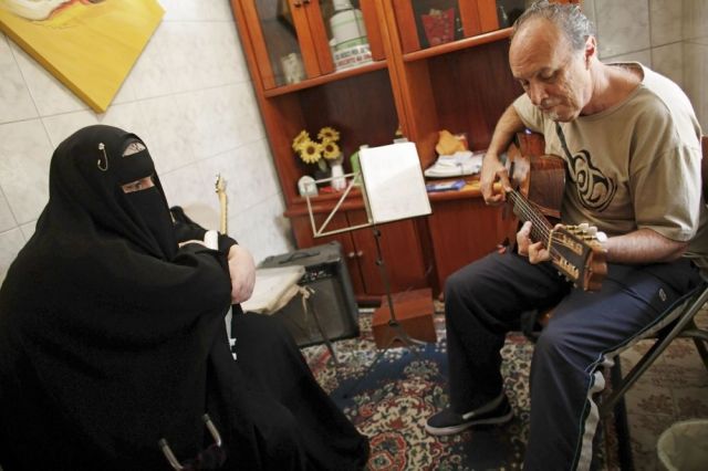 إلاّ أن النقاب لم يغيّر في عشق المرأة الأربعينية للموسيقى التي تدرسها ست ساعات يومياً، ولا في شغفها بموسيقى الـ"هافي ميتال" هي المعجبة بعازف الغيتار راندي رودس.