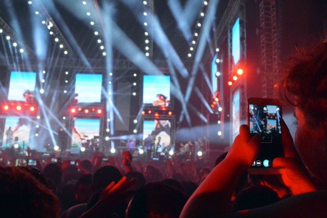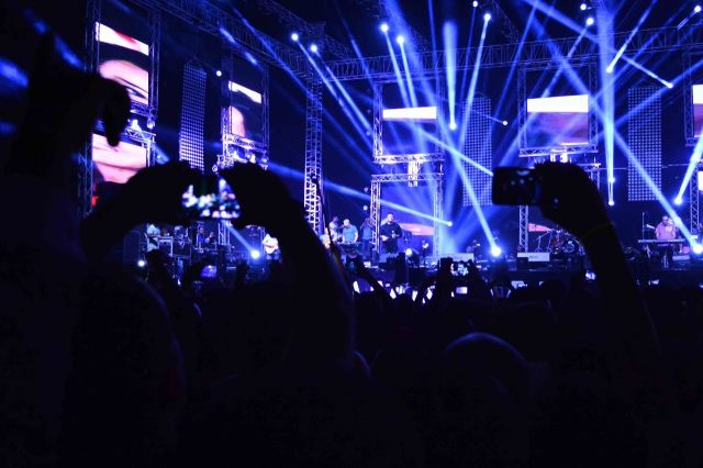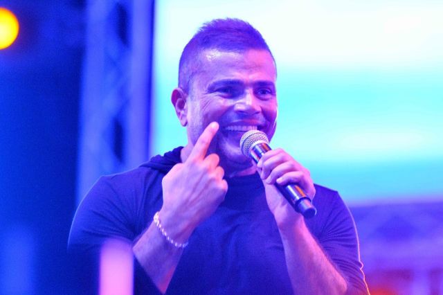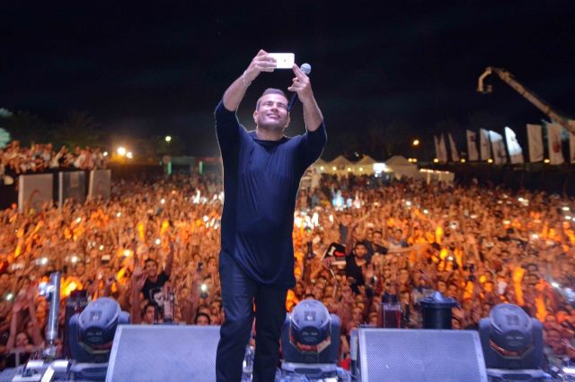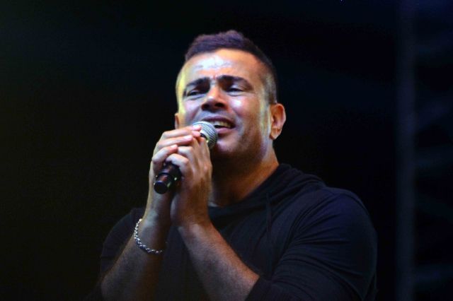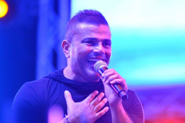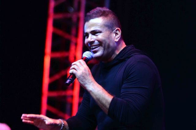 بالصور: عمرو دياب يغني وسط حراسة أمنية